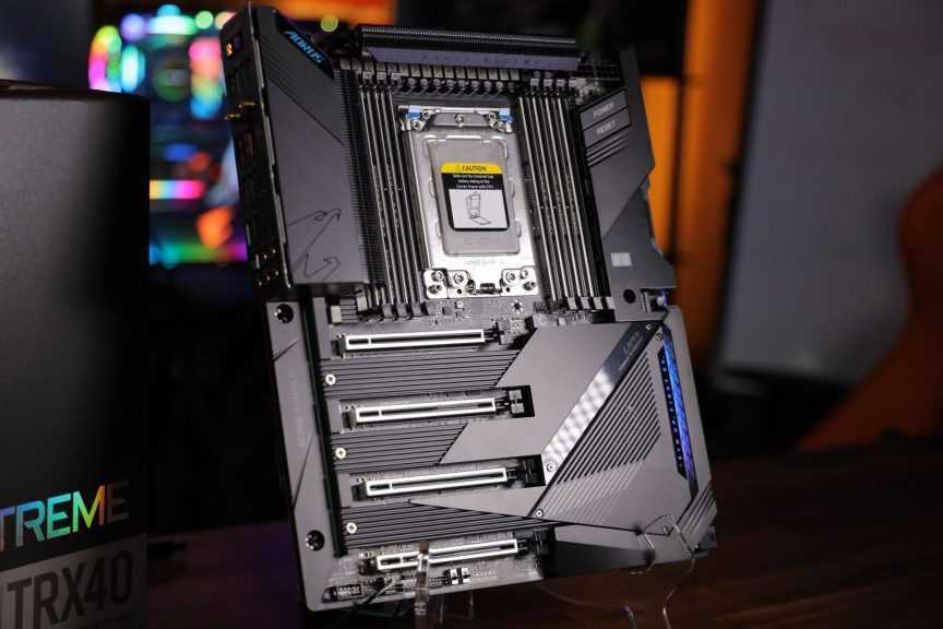 В качестве новой материнской платы Линус Торвальдс приобрёл Gigabyte TRX40 Aorus Master. Её главное преимущество — способность выдерживать большие перепады напряжения и поддержка стереозвука 7.1. Максимальная тактовая частота оперативной памяти на этой плате — 4400 МГц.