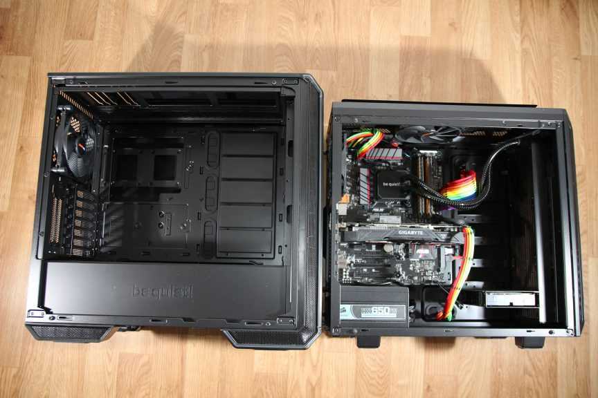 Все вышеупомянутые комплектующие смонтированы в корпус Be Quiet Dark Base 700. Конечно же, его главной его особенностью является хорошая трехсторонняя шумоизоляция. Сам Линус говорит, что предпочёл бы купить корпус от Noctua, но так как эта фирма не производит подобные товары, он остановил выбор на Be Quiet.