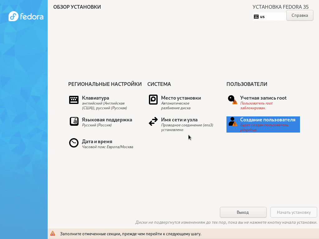 Установка Fedora 35 Kinoite