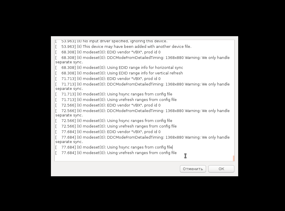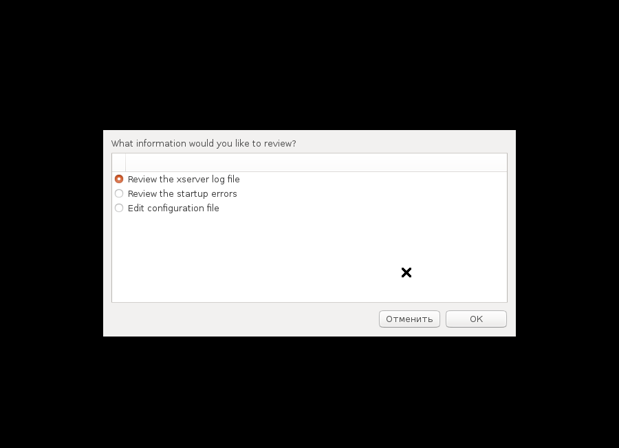 В следующем окне можно выбрать несколько вариантов для исправления системы. При выборе «Troubleshoting» вы можете просмотреть логи загрузки, X сервера или отредактировать конфигурационный файл X.