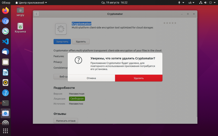 Чтобы удалить пакет Ubuntu, достаточно кликнуть по нему левой кнопкой мыши, и когда появляться доступные действия нажать кнопку Удалить: