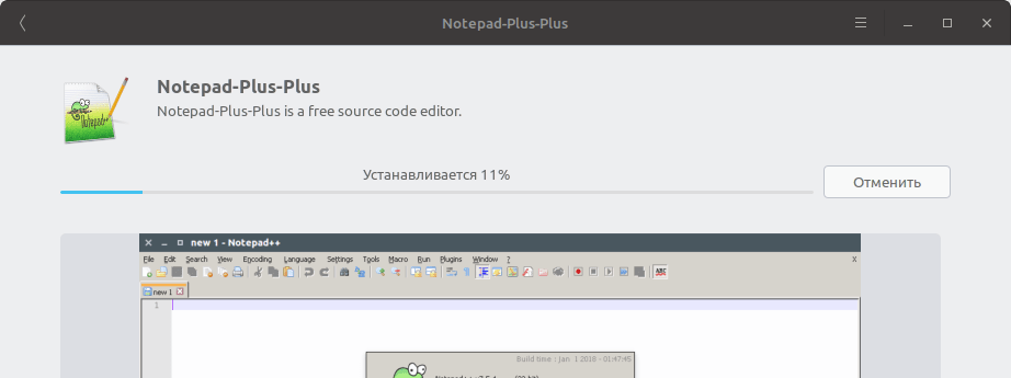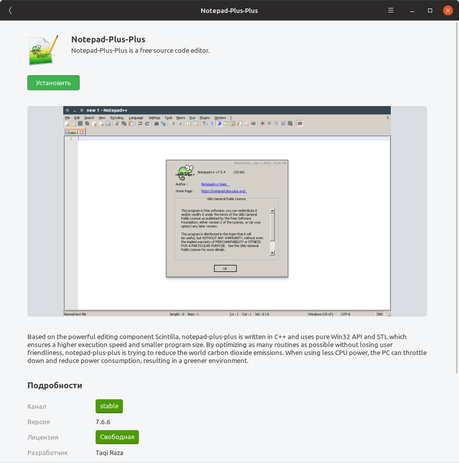 Для установки Notepad++ в дистрибутивах отличных от Ubuntu выполните команду: