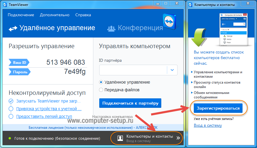 Зарегистрировать аккаунт в TeamViewer