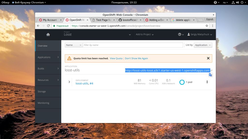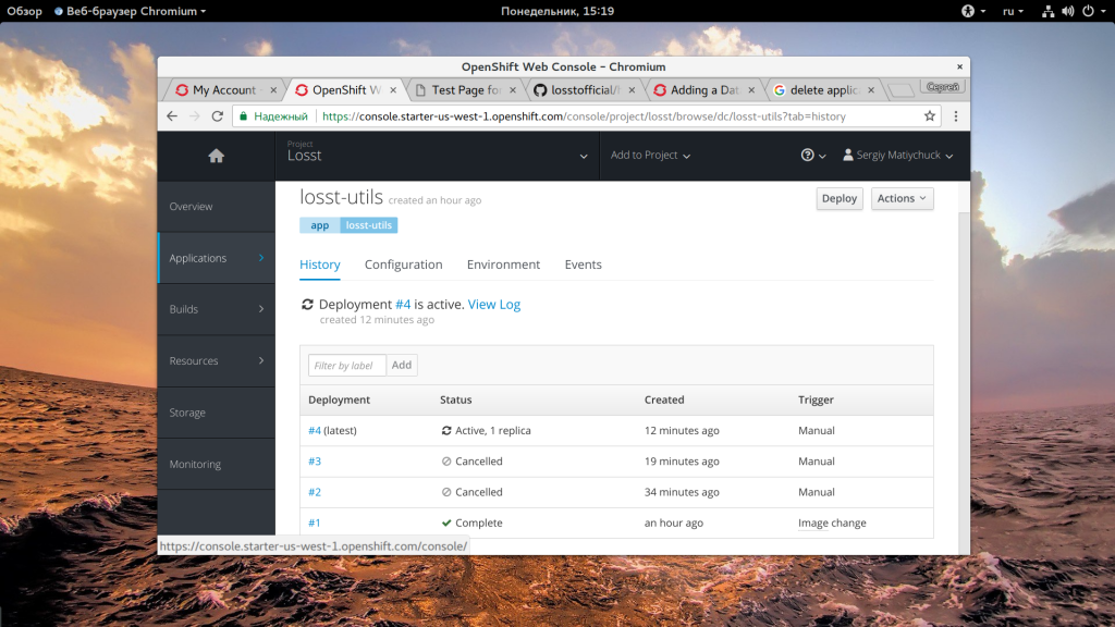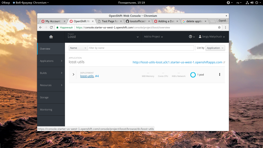 Здесь есть список всех приложений, например, мое приложение losst-utils. Если вы откроете приложение, то увидите список последних «Deployment», то есть синхронизаций с репозиторием GitHub. Здесь же можно запустить новую синхронизацию с помощью кнопки Deploy. Файлы берутся из релизов, а именно последний релиз. Также в окне Overview можно посмотреть URL по которому можно открыть наш проект в браузере:
