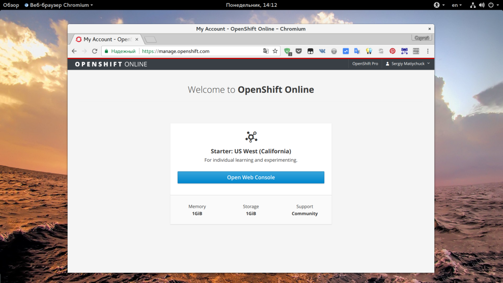 Когда аккаунт будет развернут, нажмите кнопку «Open Web console» чтобы перейти к управлению контейнером.