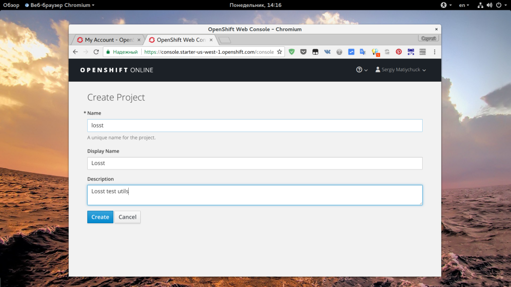 В следующем окне введите название проекта и его описание, а затем нажмите кнопку «Create»: