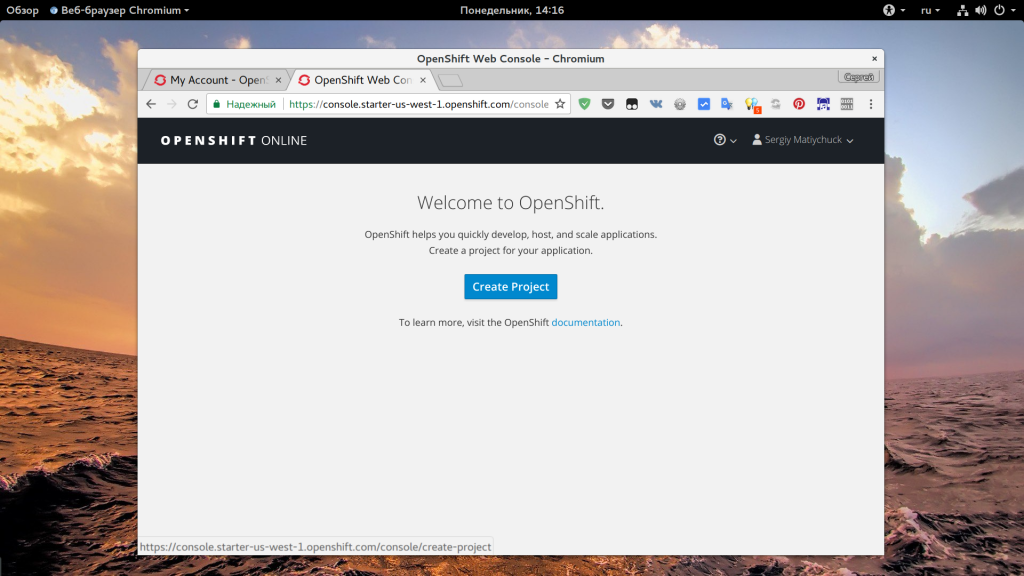 В последнем окне сайт сообщает, что для работы с проектом нам понадобиться использовать их собственную утилиту oc, которую нужно скачать и установить. Сначала перейдите на страницу загрузки и скачайте архив для вашей операционной системы. Например, для Linux: