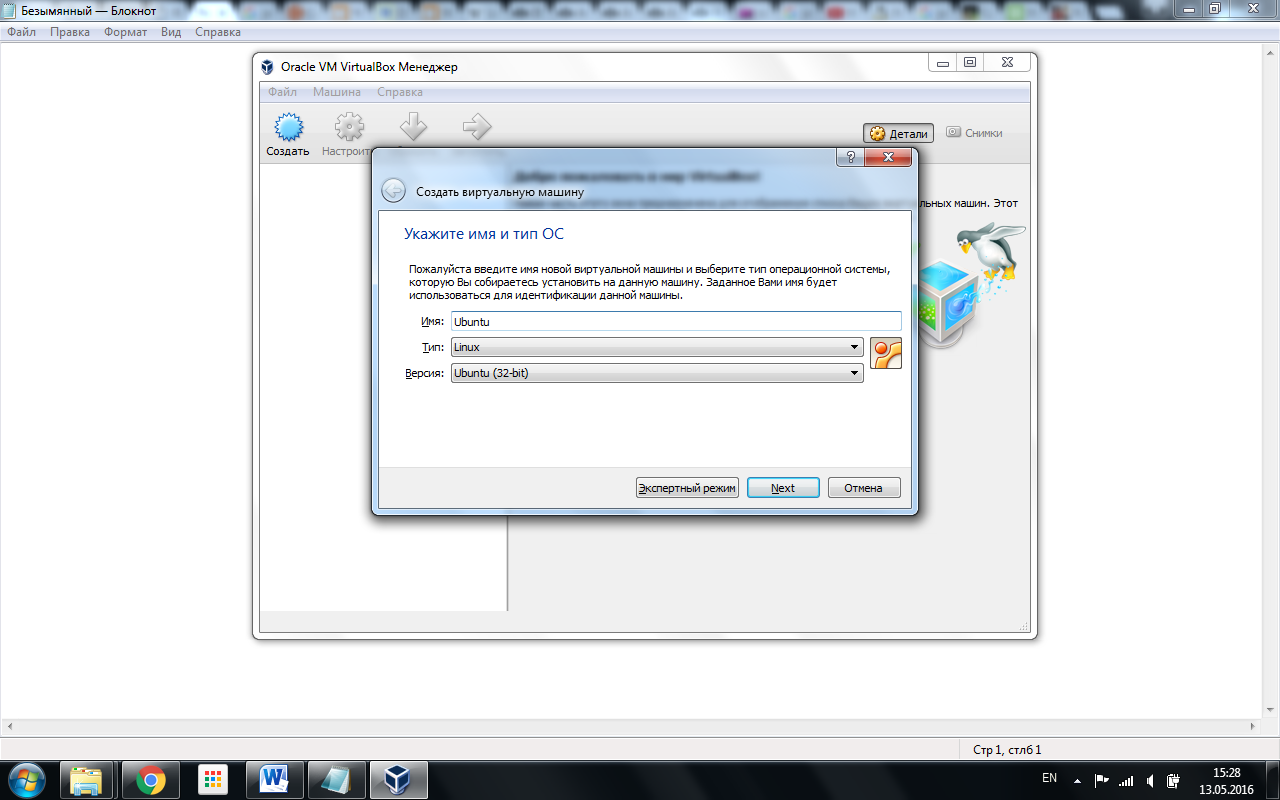 - тип операционной системы, которая будет установлена на виртуальной машине. В данном случае — Linux