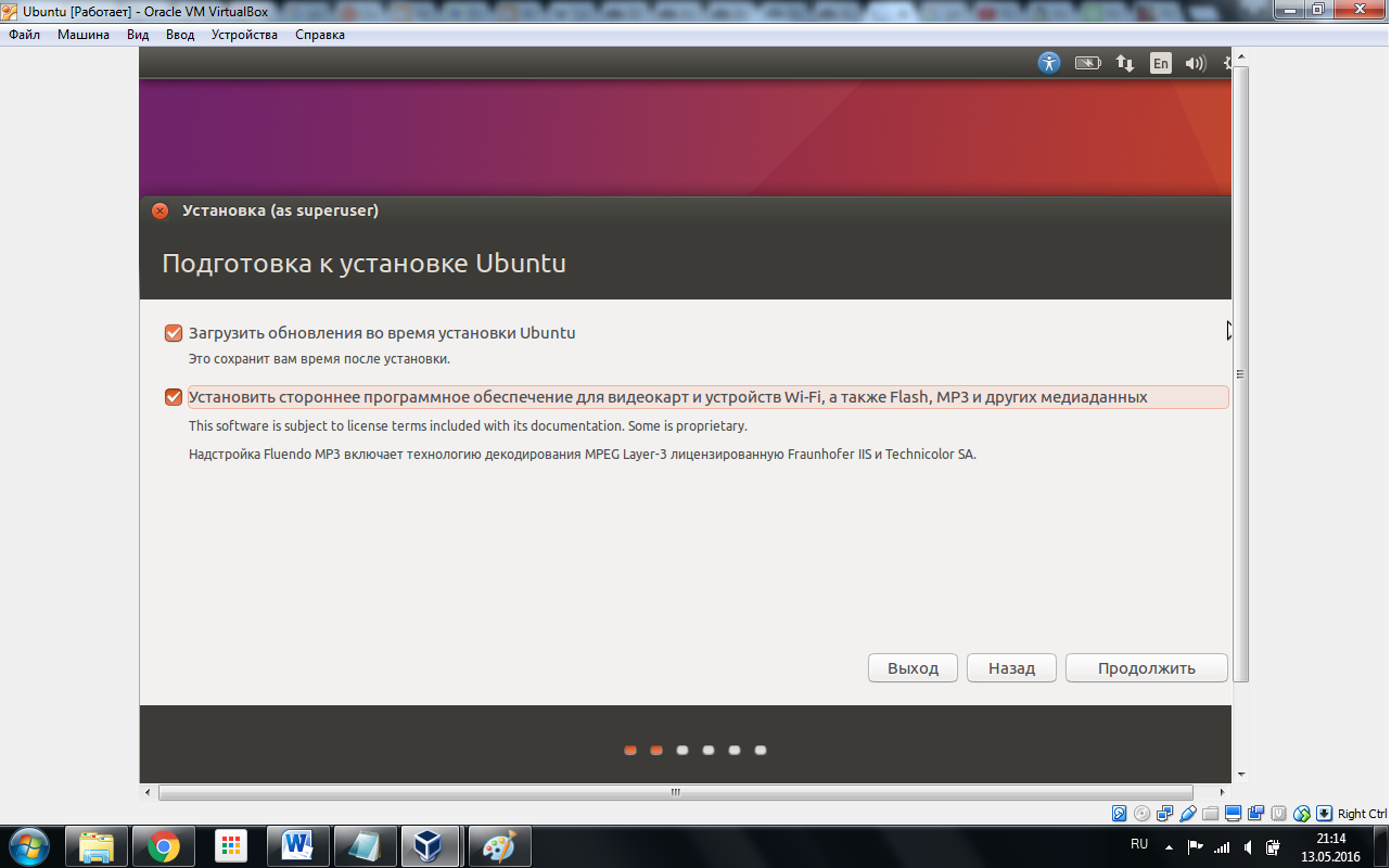В шаге «Подготовка к установке Ubuntu», активирую оба пункта: Загрузить обновления при установке и Установить стороннее программное обеспечение, и жму на кнопку «Продолжить».