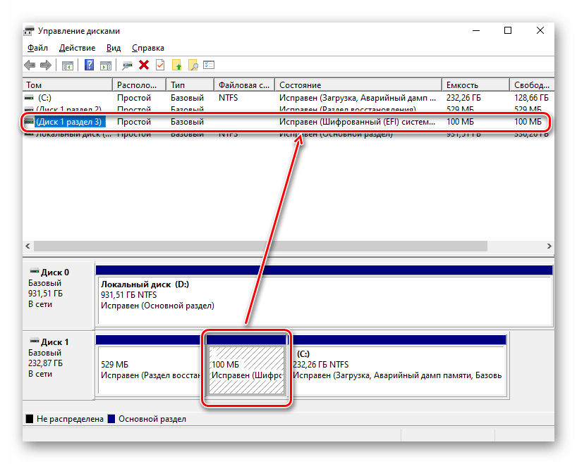Поищите наличие раздела с названием «Шифрованный EFI» на системном диске (это один из разделов восстановления, создающихся системой автоматически). Название раздела отображается при наведении на него курсором или в столбце «Состояние», если тот раздвинуть. Если вы нашли такой раздел, значит, на ПК используется режим UEFI. При наличии раздела «Зарезервировано системой» и отсутствии раздела EFI не составляет труда сделать вывод о том, что у вас Legacy BIOS.