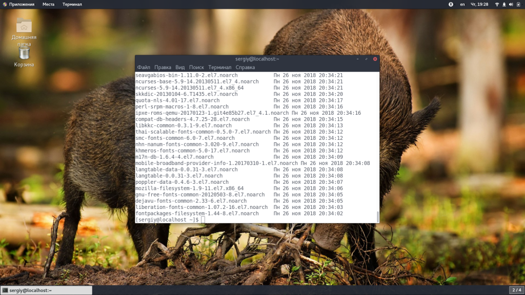 Позже этот список можно использовать для автоматической установки всех этих пакетов в другой системе. Для установки нужно использовать YUM: