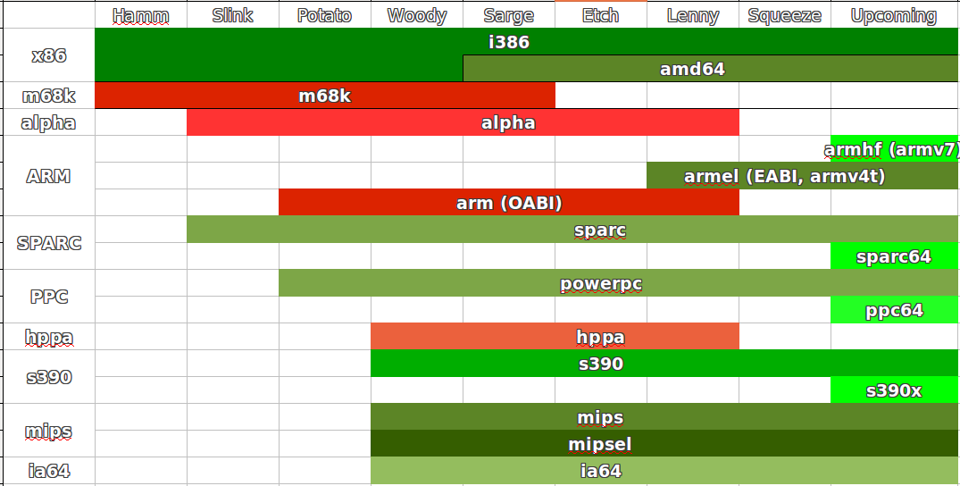 Хронология портов Debian GNU/Linux.