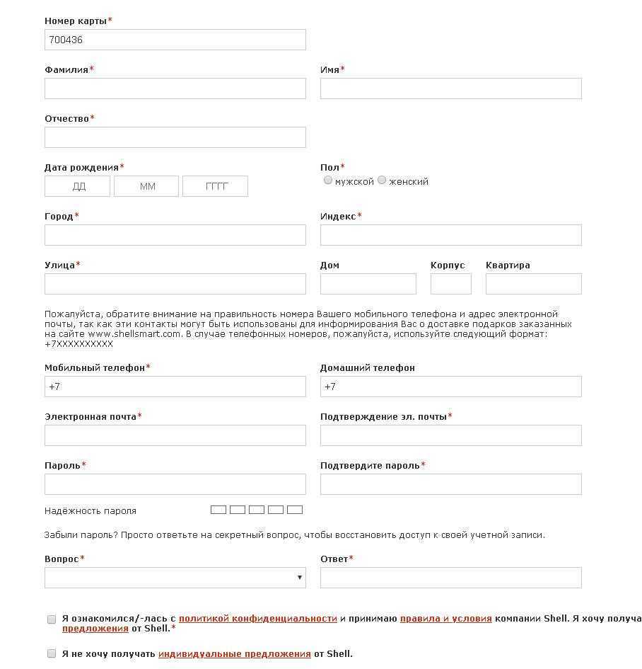Как зарегистрировать карту на сайте www.shellsmart.com