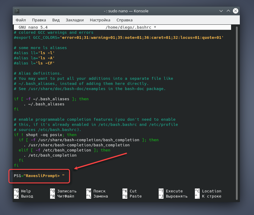 Когда вы сгенерировали собственное приглашение, отредактируйте ~ / .bashrc: