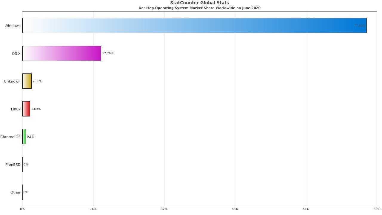 По версии StatCounter, доля Linux не превышает 2%