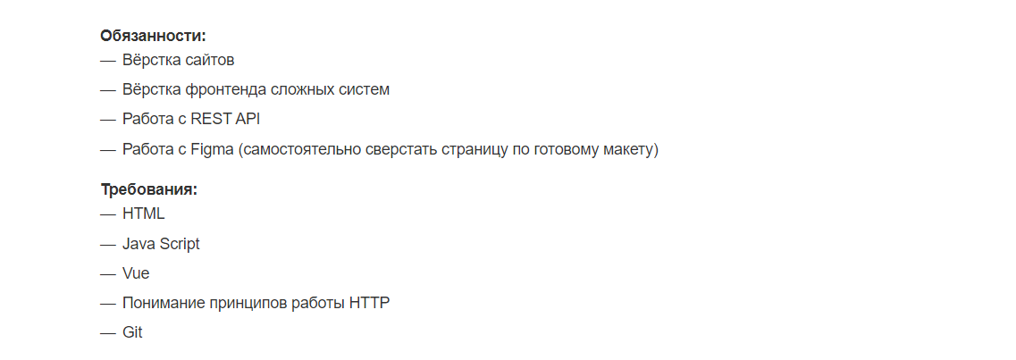 В списке могут встретиться незнакомые слова, но это не проблема: все они относятся к веб-разработке, и их точно можно получить на наших курсах или бесплатных интенсивах.