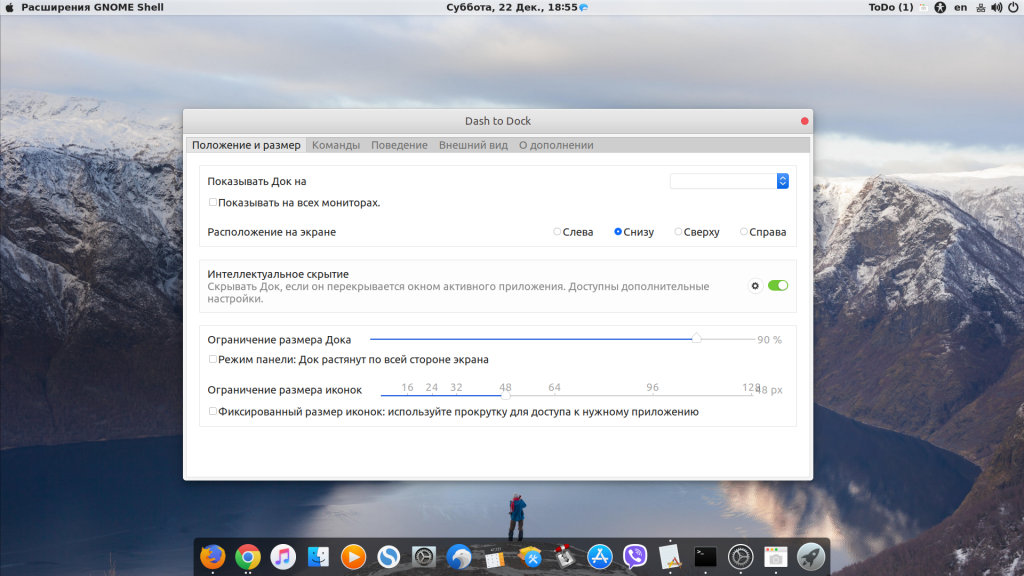 5. Настройка док панели