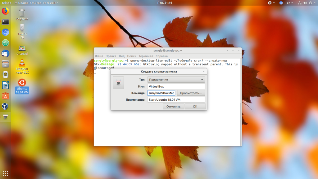 Затем, чтобы создать ярлык Ubuntu нужно выполнить: