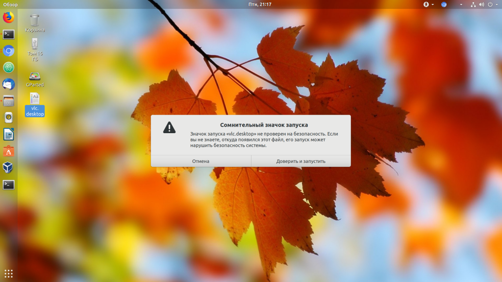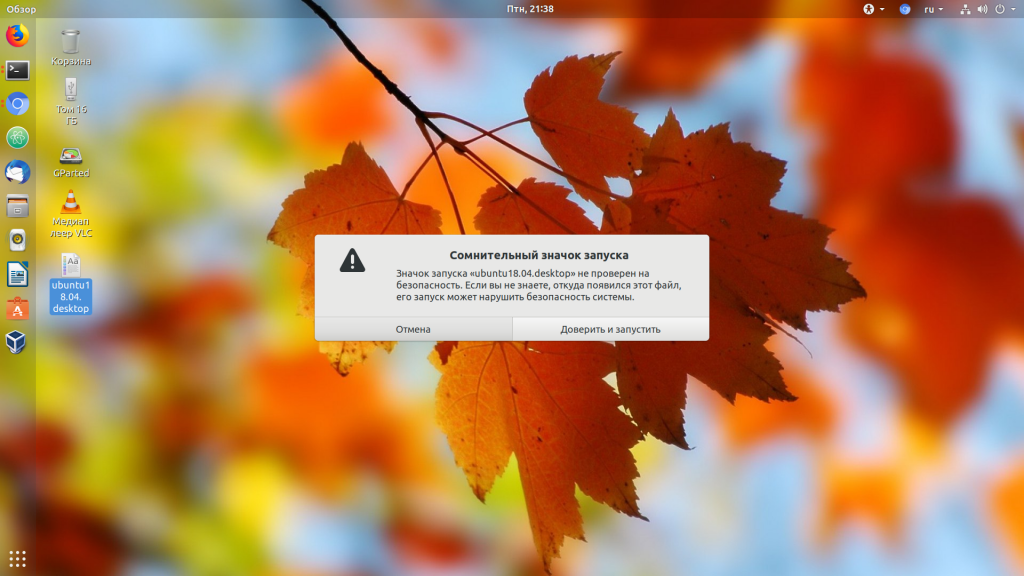 Ярлыки приложений на рабочем столе в Ubuntu с рабочим столом GNOME