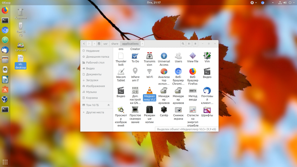 Затем откройте в файловом менеджере Nautilus папку /usr/share/applications и скопируйте ярлык нужной программы на Рабочий стол