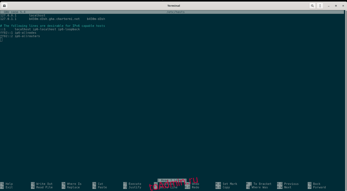 В окне терминала откройте файл hosts с помощью вашего любимого текстового редактора : При появлении запроса введите свой пароль sudo.