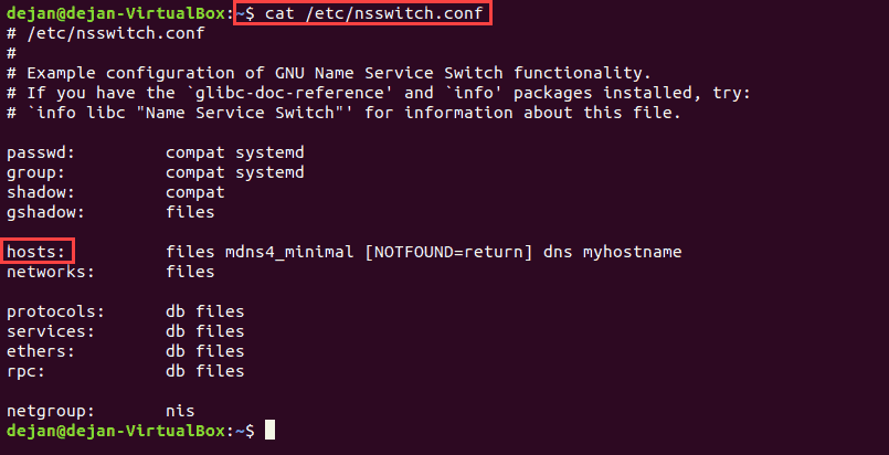 About halfway down, there should be an entry labeled “hosts”. Make sure that the right-hand column lists first. If for some reason DNS is listed first, open the file in your text editor: