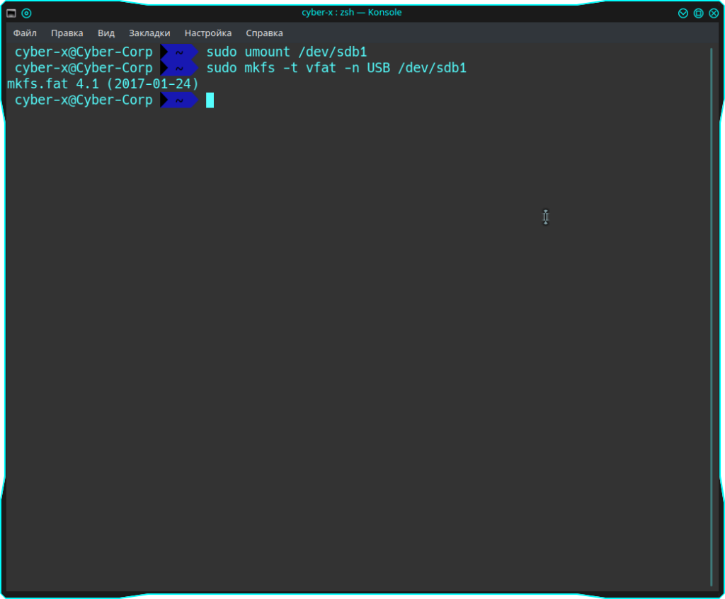 Форматирование флешки в Linux с помощью терминала