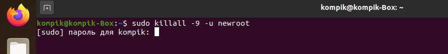 Ну хорошо, но у нас есть еще пользователь с рутовым правами и именем newroot, помните, мы его создали, а потом хотели удалить, но безуспешно? Этот юзер использует корневой процесс unit с ID 1, — убьёте его командой killall — тут же уложите систему.