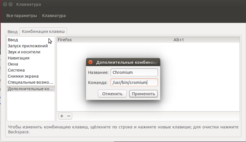 Запуск приложений и выполнение команд Ubuntu по сочетанию клавиш