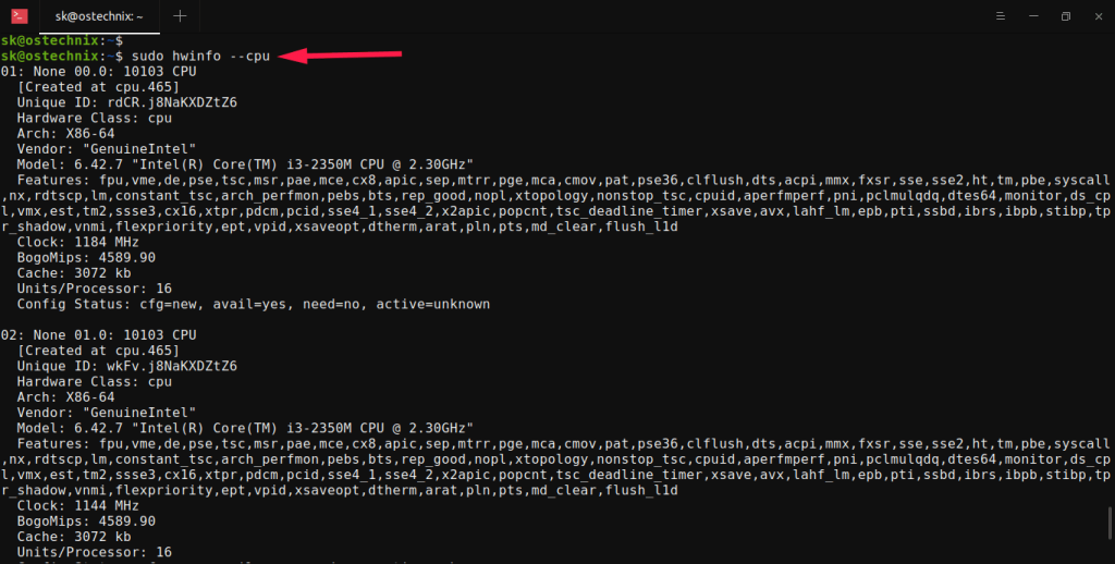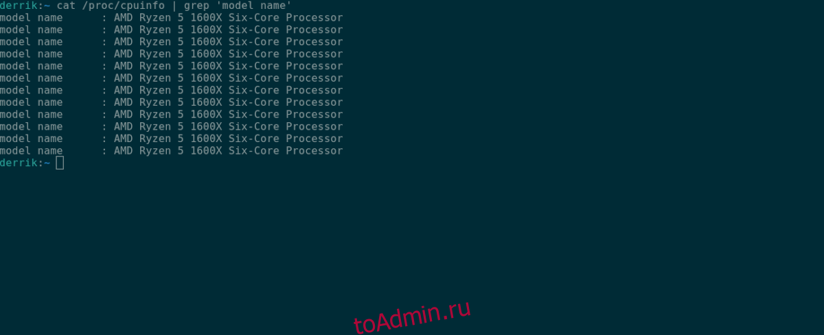 Другой способ найти информацию о процессоре — использовать файл / proc / cpuinfo. Он содержит массу полезной информации, и вы можете использовать ее, чтобы узнать марку вашего процессора, количество ядер и многое другое.