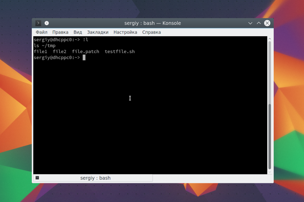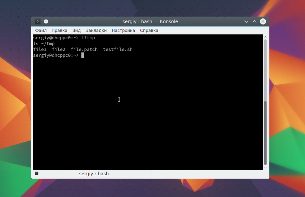 Если нужная команда последняя содержала определенное слово, например, tmp, то вы можете ее найти, использовав «!?tmp»: