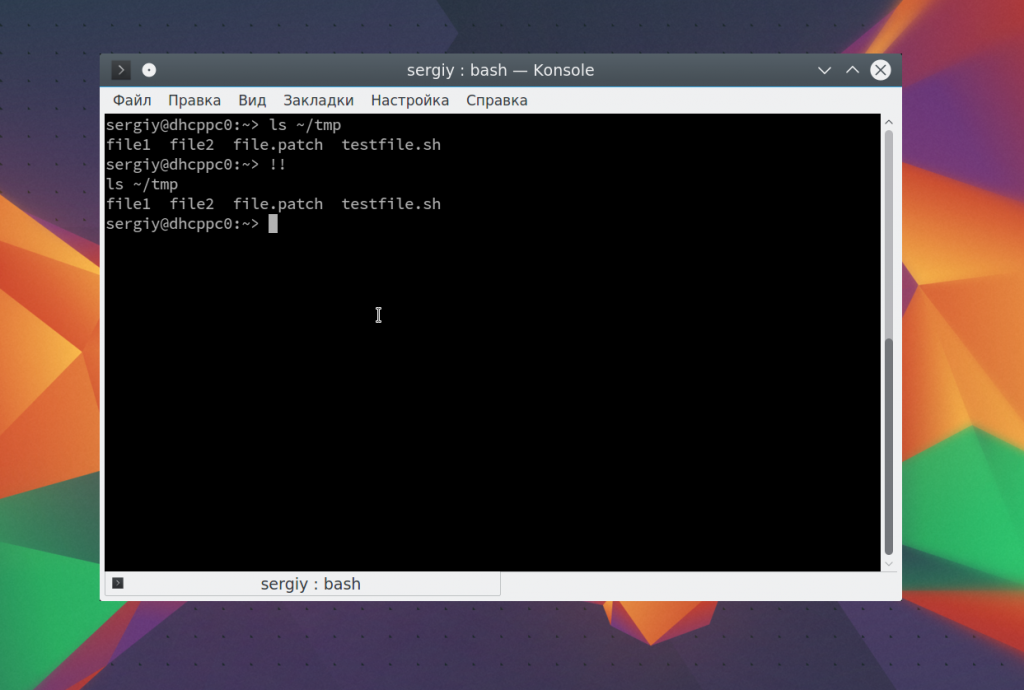 Вы можете выполнить последнюю команду просто набрав «!!». Также можно выполнить одну из предыдущих команд указав ее номер «!-2»
