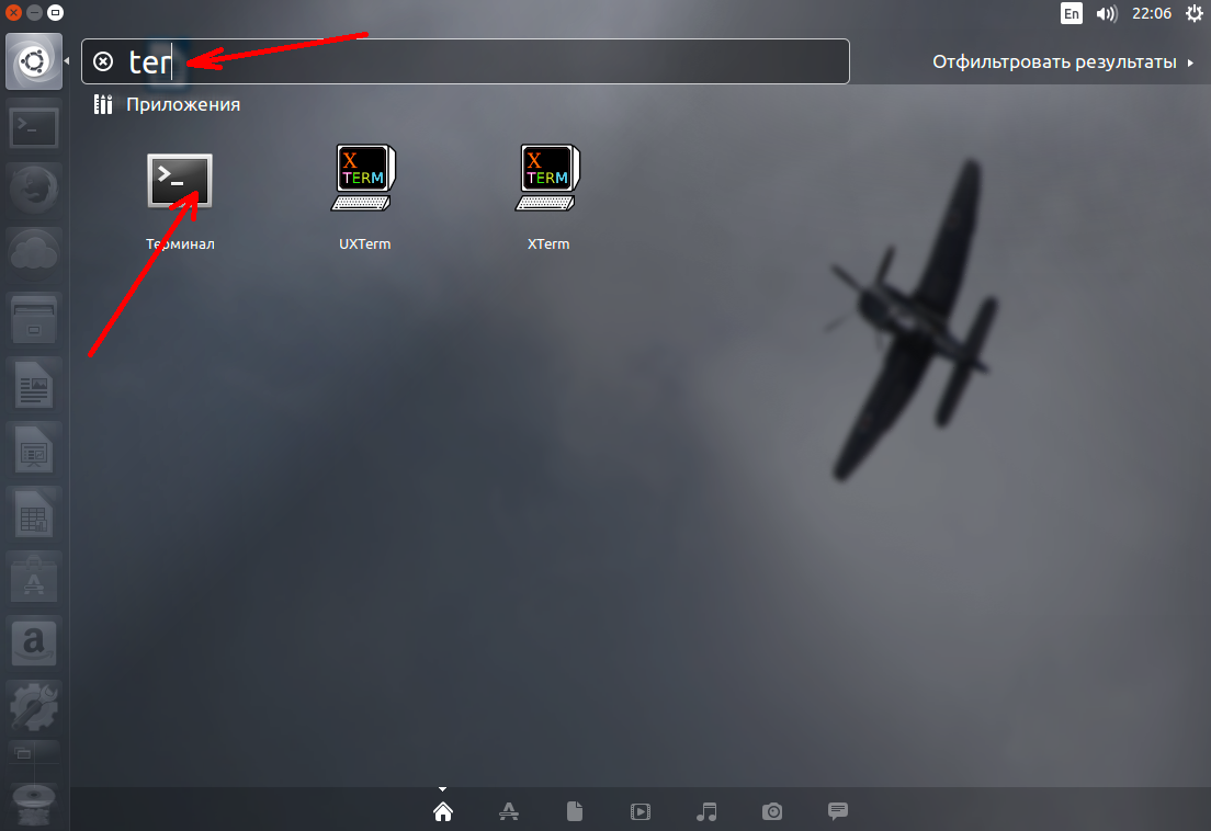 Откройте терминал нажав комбинацию клавиш Ctrl+Alt+T, или кликнув по значку терминала в Dash набрав в поиске terminal: