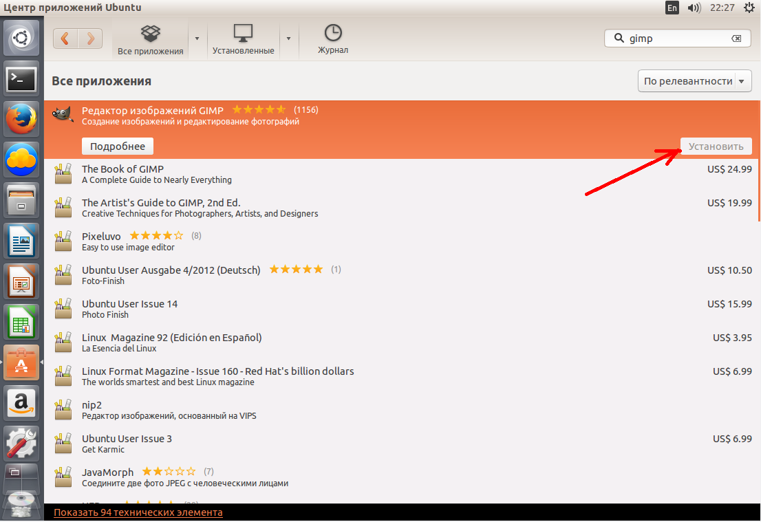 Установка Gimp через центр приложений Ubuntu
