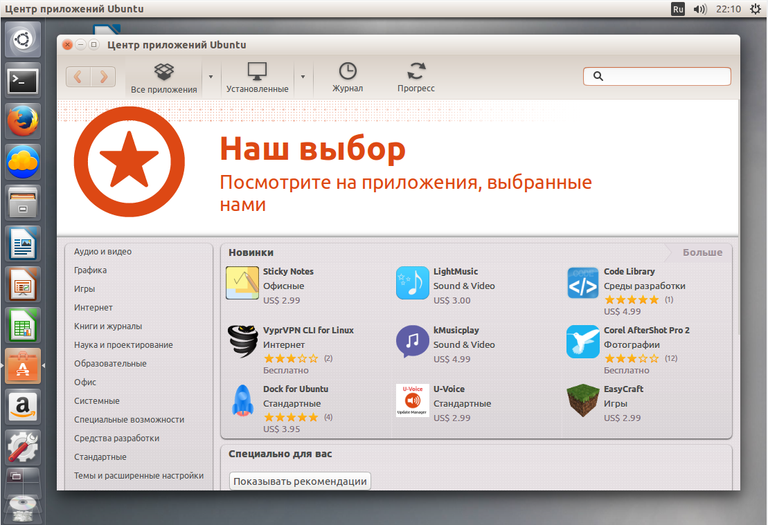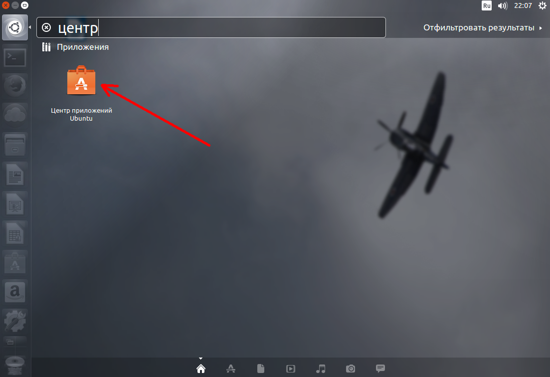 Запустите центр приложений кликнув на его иконке в меню Dash: