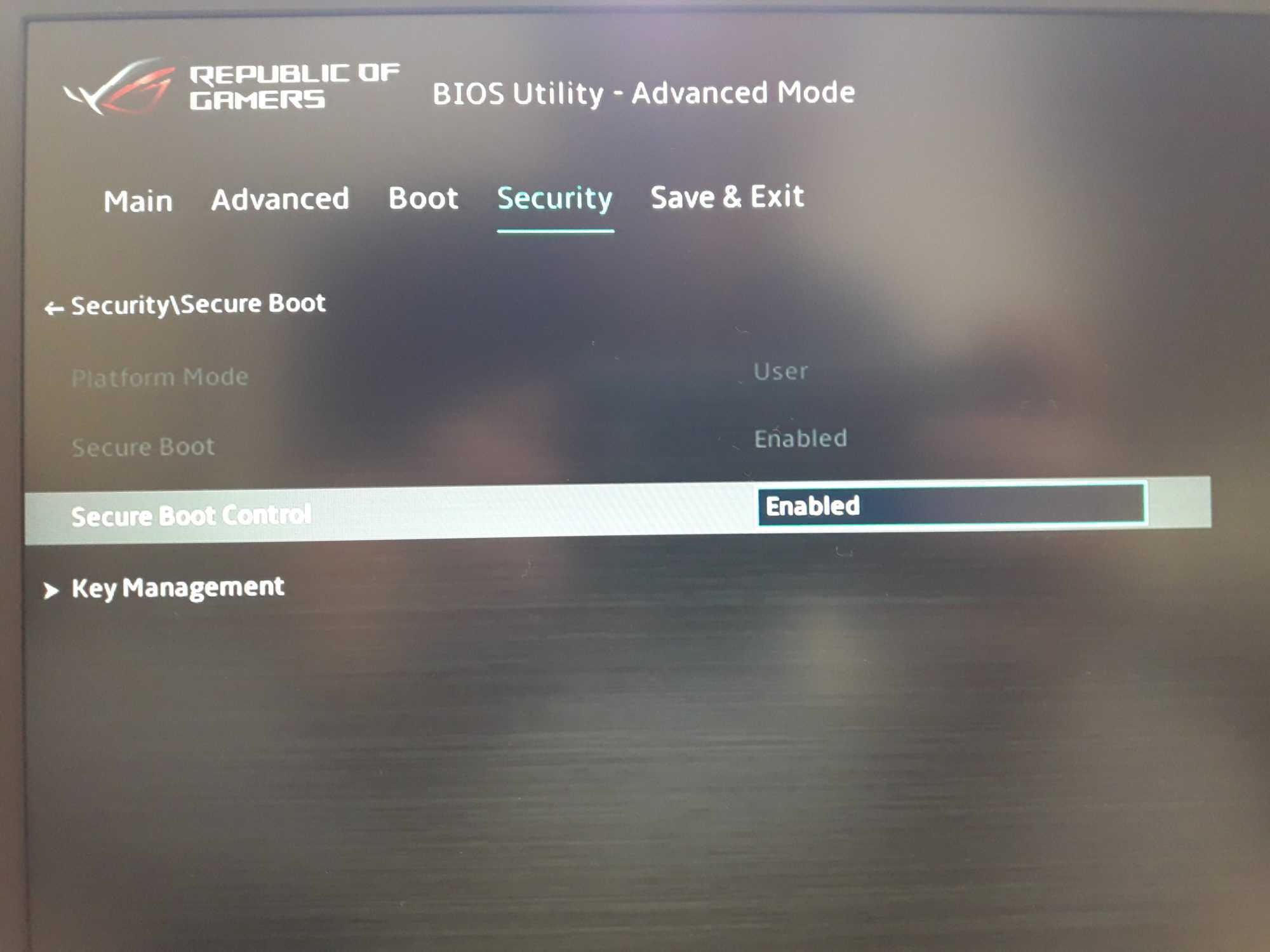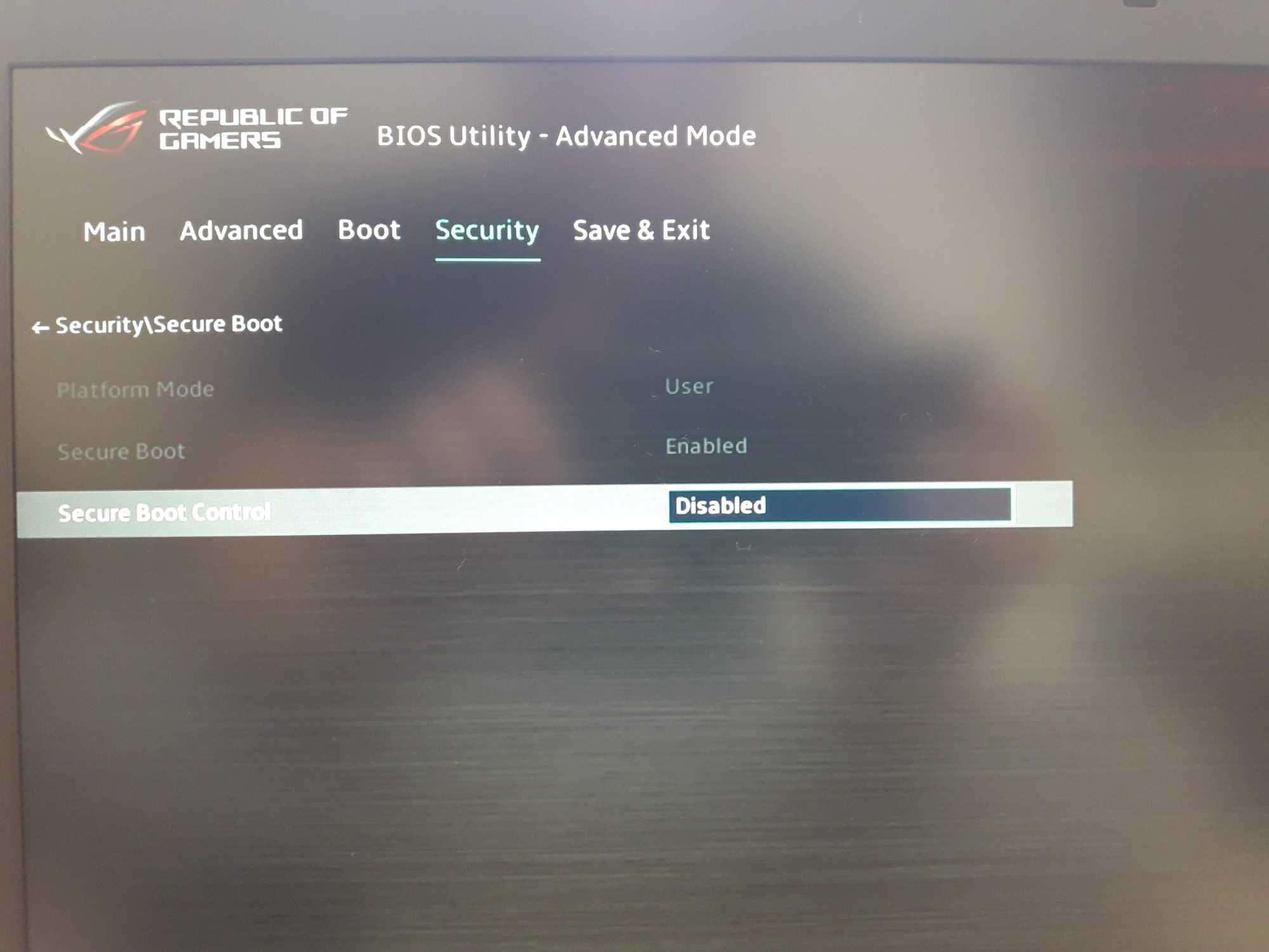 Нажмите F7, чтобы перейти в Advance Mode и там выберите вкладку Security. Найдите опцию Secure boot: