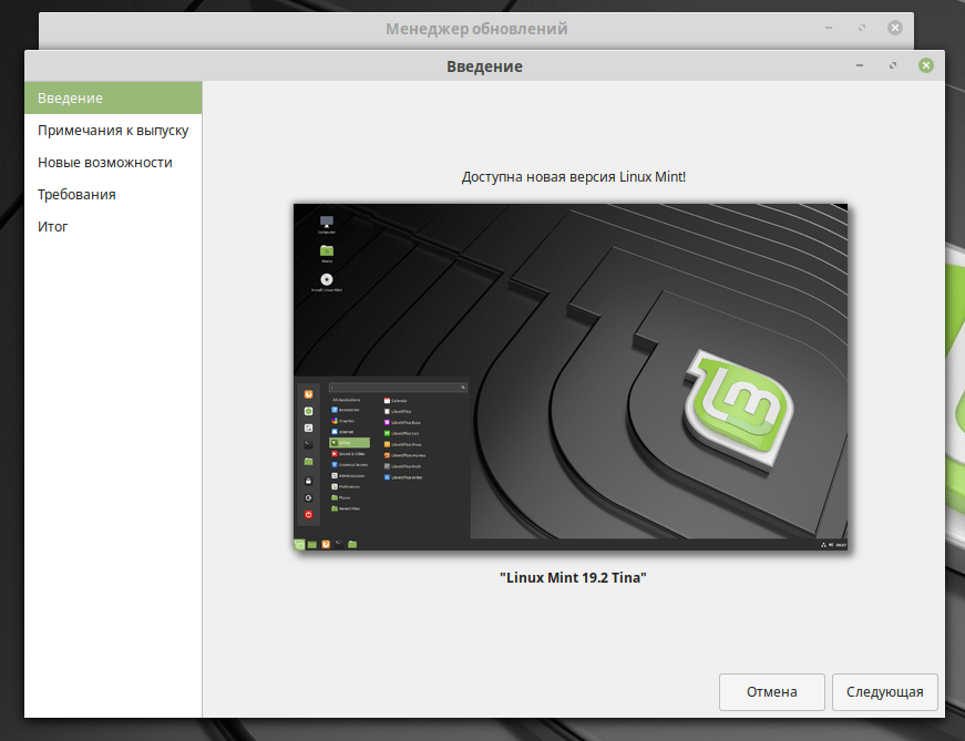 После этого можно переходить к процессу обновления дистрибутива Linux Mint.