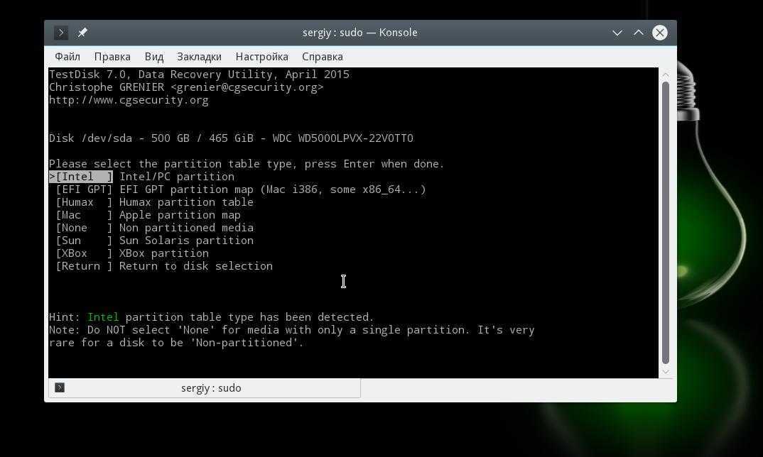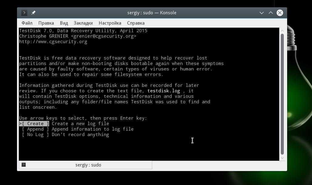 Способ работы утилиты очень сильно отличается в зависимости от нужного действия. Здесь вас ждет псевдографический мастер, который проведет вас через все шаги. Установить testdisk можно так же само из официальных репозиториев. В Ubuntu используйте для этого команду: