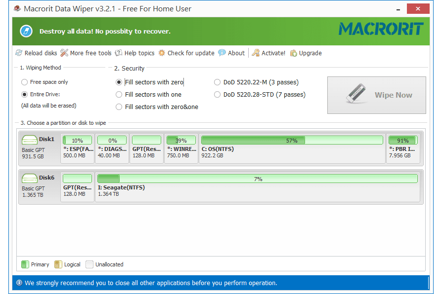 Macrorit Data Wiper отличается от вышеуказанных программ тем, что не запускается с загрузочного диска. Это портативная программа, которую вы должны открывать со своего компьютера, как обычную программу.