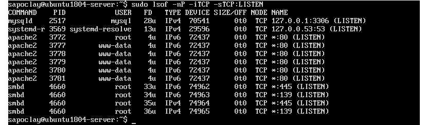 Команда Lsof — еще одна доступная утилита, которую мы сможем запустить в терминале Ubuntu и которая это позволит нам видеть сетевую информацию. Чтобы перечислить все TCP-порты, которые прослушивают, нам нужно будет использовать только команду lsof со следующими параметрами: