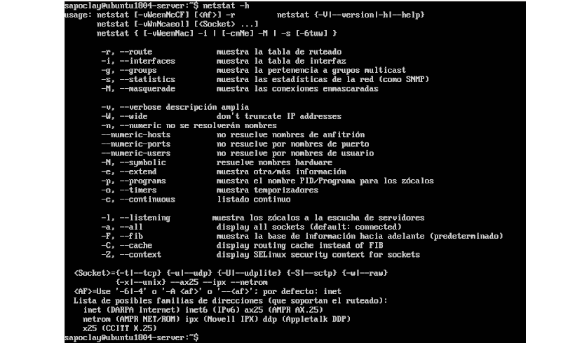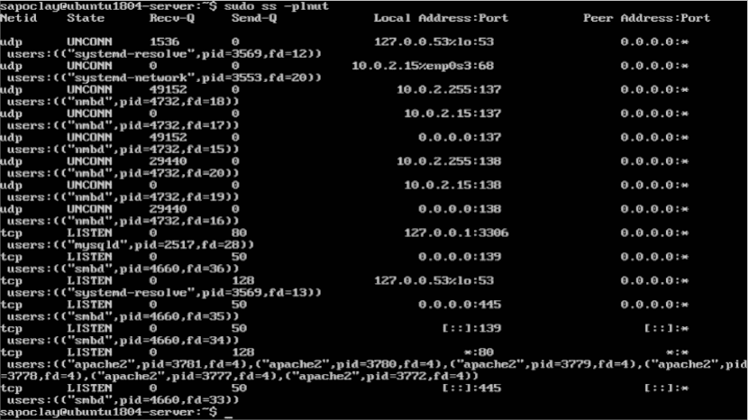 Результат предыдущей команды, как и ранее с командой netstat, должен показать нам нечто похожее на следующий снимок экрана: