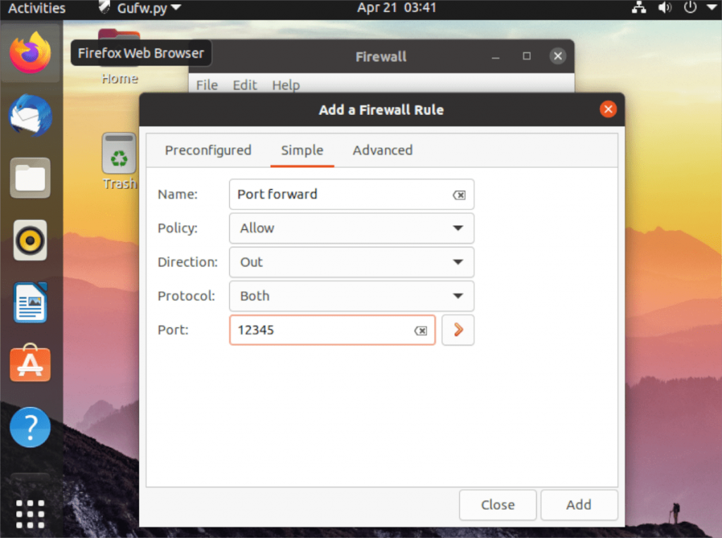 Самый простой способ перенаправить порт через брандмауэр в Ubuntu — использовать графический интерфейс. Графический интерфейс брандмауэра Ubuntu действует как посредник для командной строки. По сути, это дает приятный интерфейс для приложения командной строки.