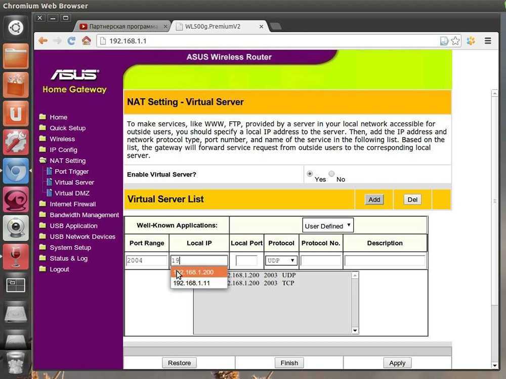 Перенаправление портов в Ubuntu — графический интерфейс