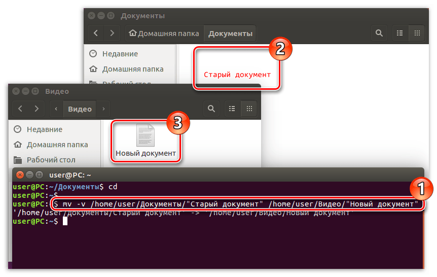 Как переместить файл в терминале Linux