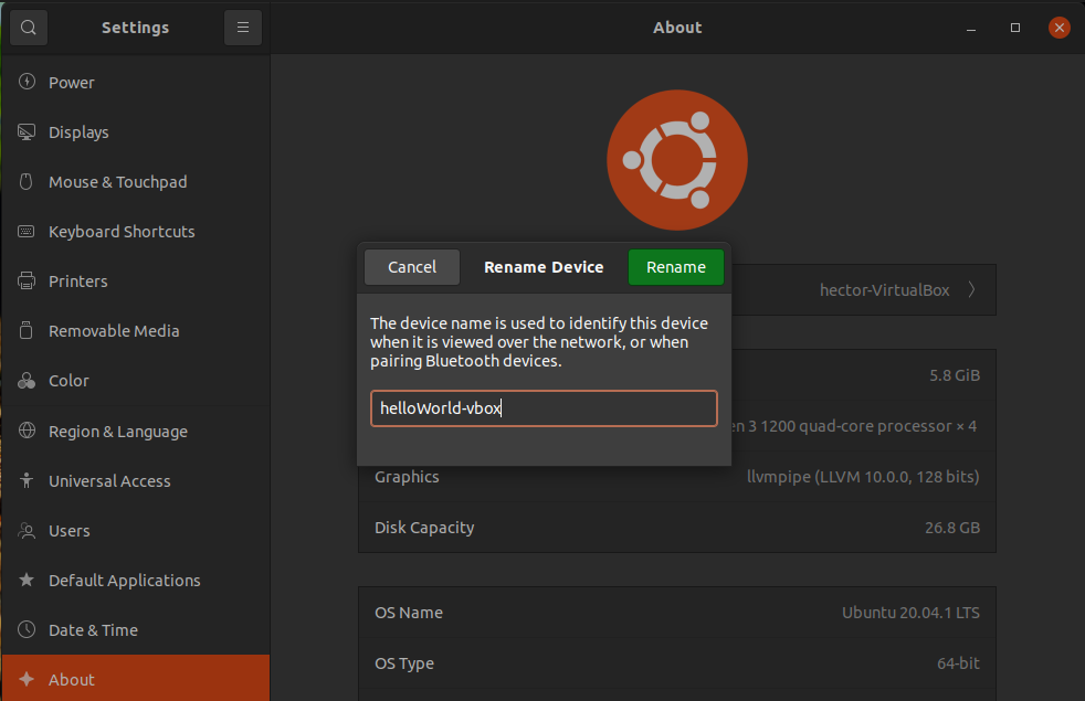 GNOME — мощная среда рабочего стола. Если вы используете GNOME, вы можете изменить имя хоста без выполнения каких-либо команд, открыв приложение «Настройки».