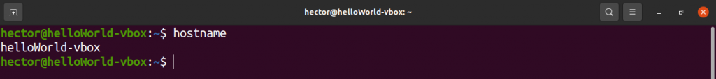 Сначала проверьте имя хоста текущей системы следующим образом.