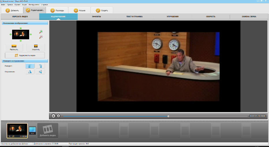 С помощью этого ПО можно проводить все базовые операции: обрезать, переворачивать, добавлять визуальные и звуковые эффекты, регулировать громкость звука и много других функций.