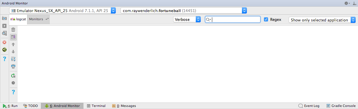 В Android Studio содержится широкое множество инструментов. Откройте вкладку Android Monitor в нижней части окна Android Studio.