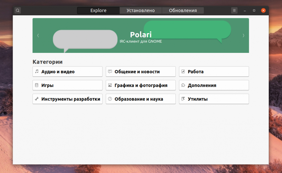 Это центр приложений Gnome. Там есть далеко не все программы, которые есть в репозиториях и подход к установке немного другой. Вы устанавливаете не пакеты по отдельности, а саму нужную программу. Обо всём остальном центр приложений заботиться сам, скрывая от вас подробности. Gnome Software поддерживает не только Deb пакеты, но и Rpm в системах, основанных на RHEL, а также snap и flatpack, о которых мы поговорим ниже.