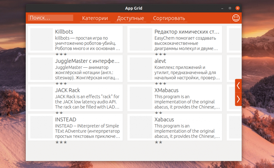 Простенькая альтернатива для центра приложений Ubuntu. Программе очень далеко до функциональности Synaptic. Она позволяет устанавливать приложения так же, как и центр приложений Gnome Software и выглядит очень похоже на Windows Store.